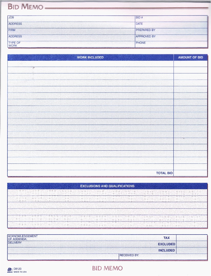 Adams Proposal Unit Form, 3 Part, Carbonless, 8.5 x 11.44