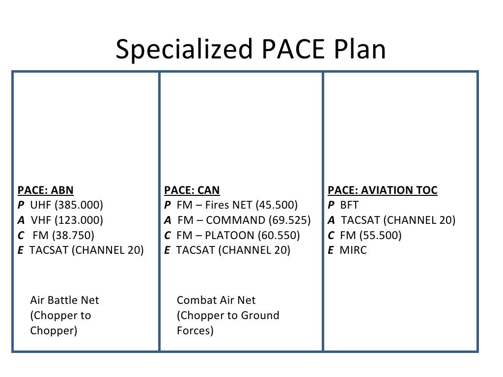 Army Pace Plan Example - When identifying a communications plan for an operation, it is critical to account for a primary, alternate, contingency, and emergency.