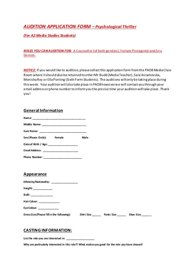 Audition application form