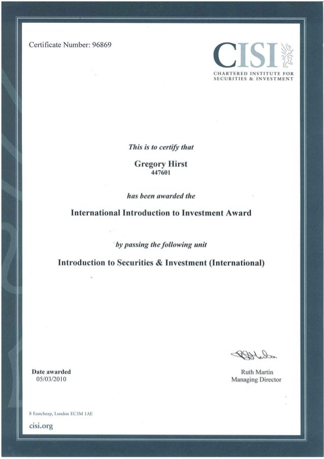 CISI 1 Certificate