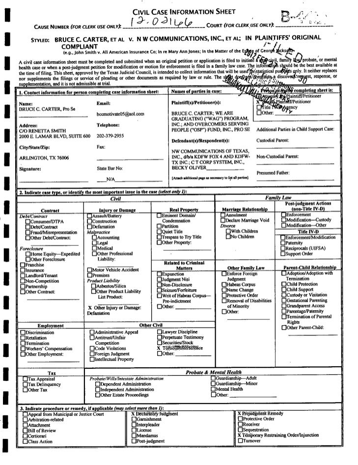 A Civil Case Information Sheet Must Be Completed And Filed With All Original Petitions Or Applications Filed To Initiate A New Civil, Family Law, Probate, Or Mental Health Case Or When A Post.