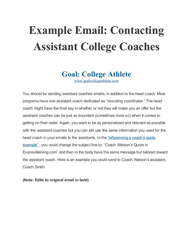 Example Email Contacting Assistant College Coaches
