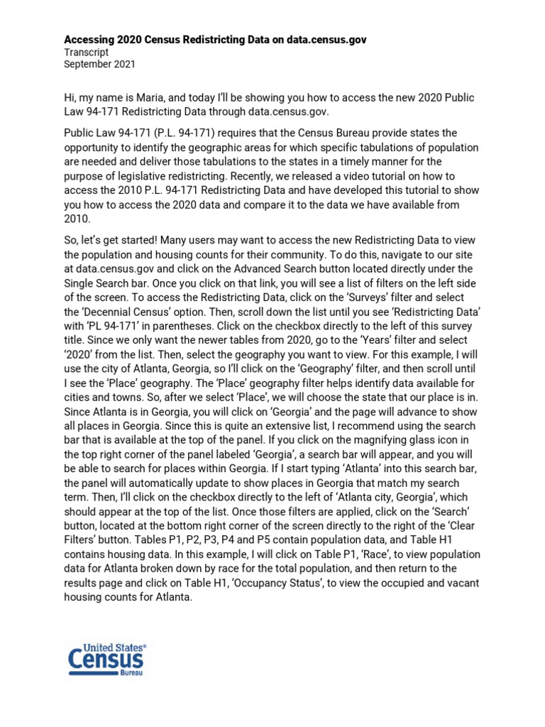Accessing 2020 Census Redistricting Data On Data Census.gov PDF