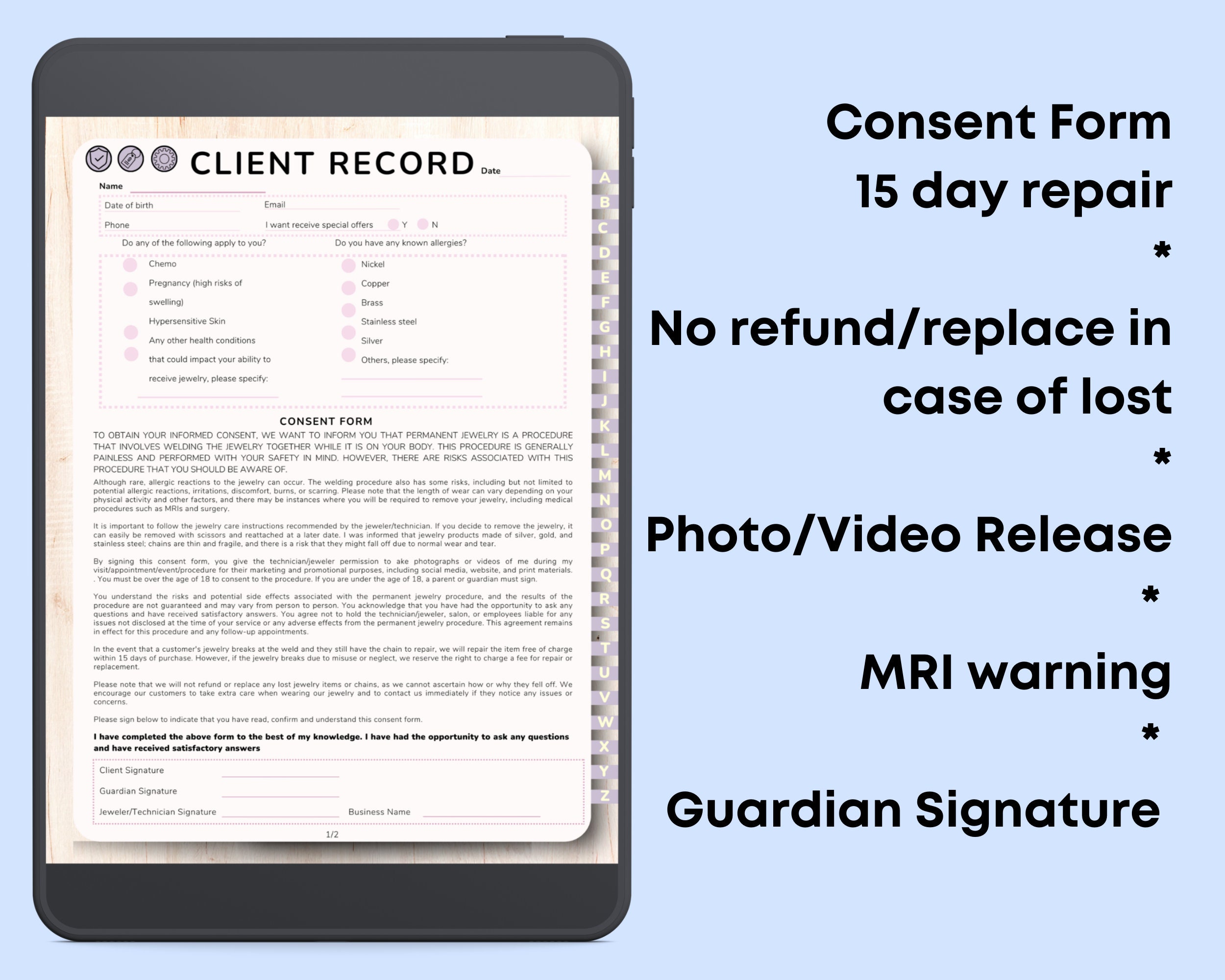 Permanent Jewelry Consent Form Permanent Jewelry Digital Client Record