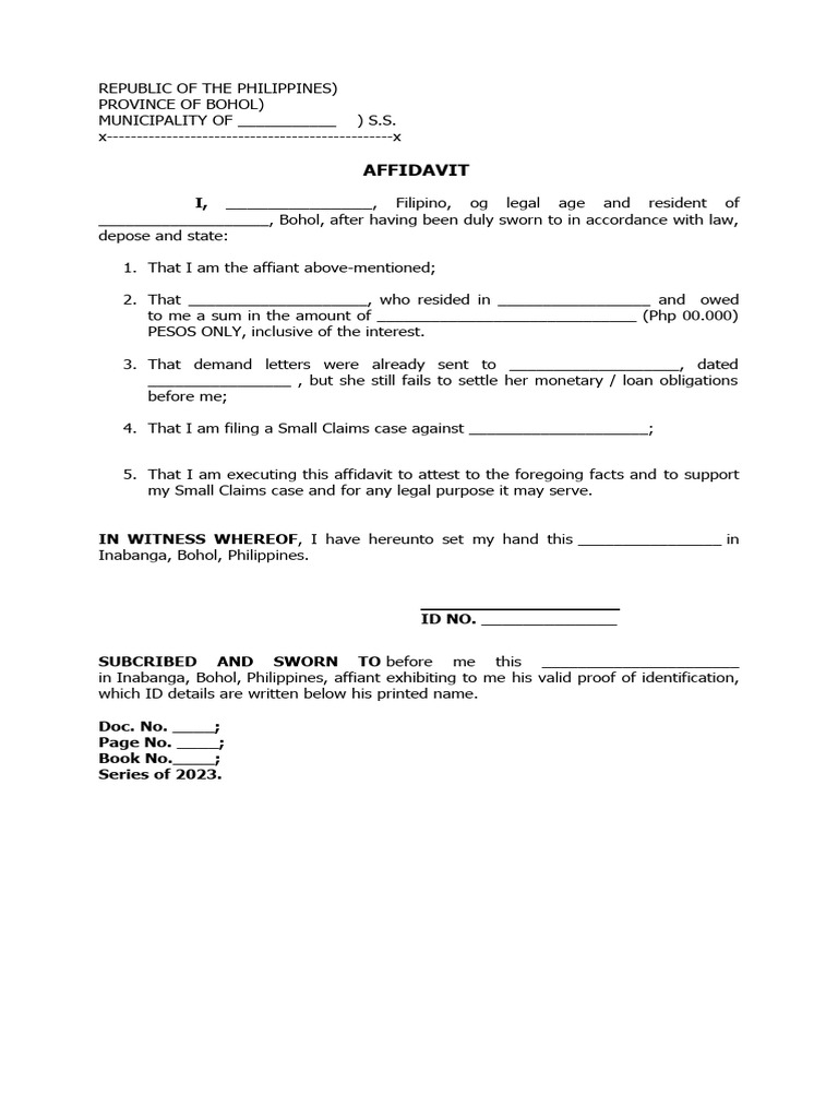 AFFIDAVIT For SMALL CLAIMS Template PDF