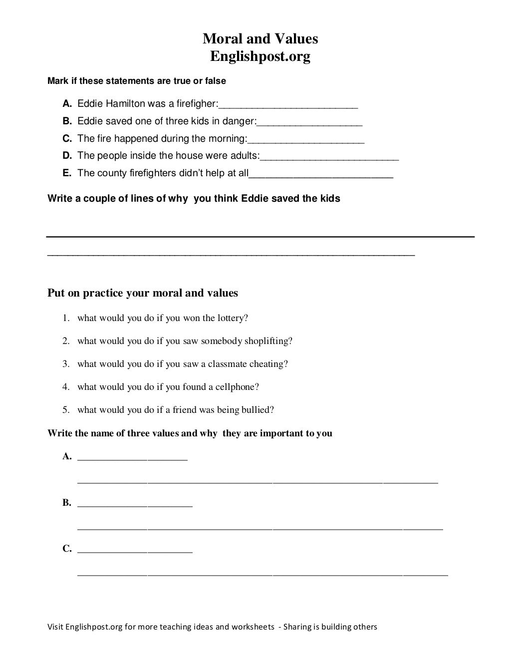 Values And Morals Worksheet - Values are the aspects of life that matter most to you. Values play a role in shaping your goals, priorities, and even your identity. These may include things like love, respect, or empathy. Principals that guide the understanding of right and wrong, based on values • being trustworthy, telling the truth • keeping your promises • having patience • being generous ethics | a set of. In fact, studies show that. Here is a worksheet to help you define the values that truly represent who you are and your purpose in this world. In this article, we share 15 values. Values are the ideals most important to you in life. The worksheet provides a quick guide to knowing your.